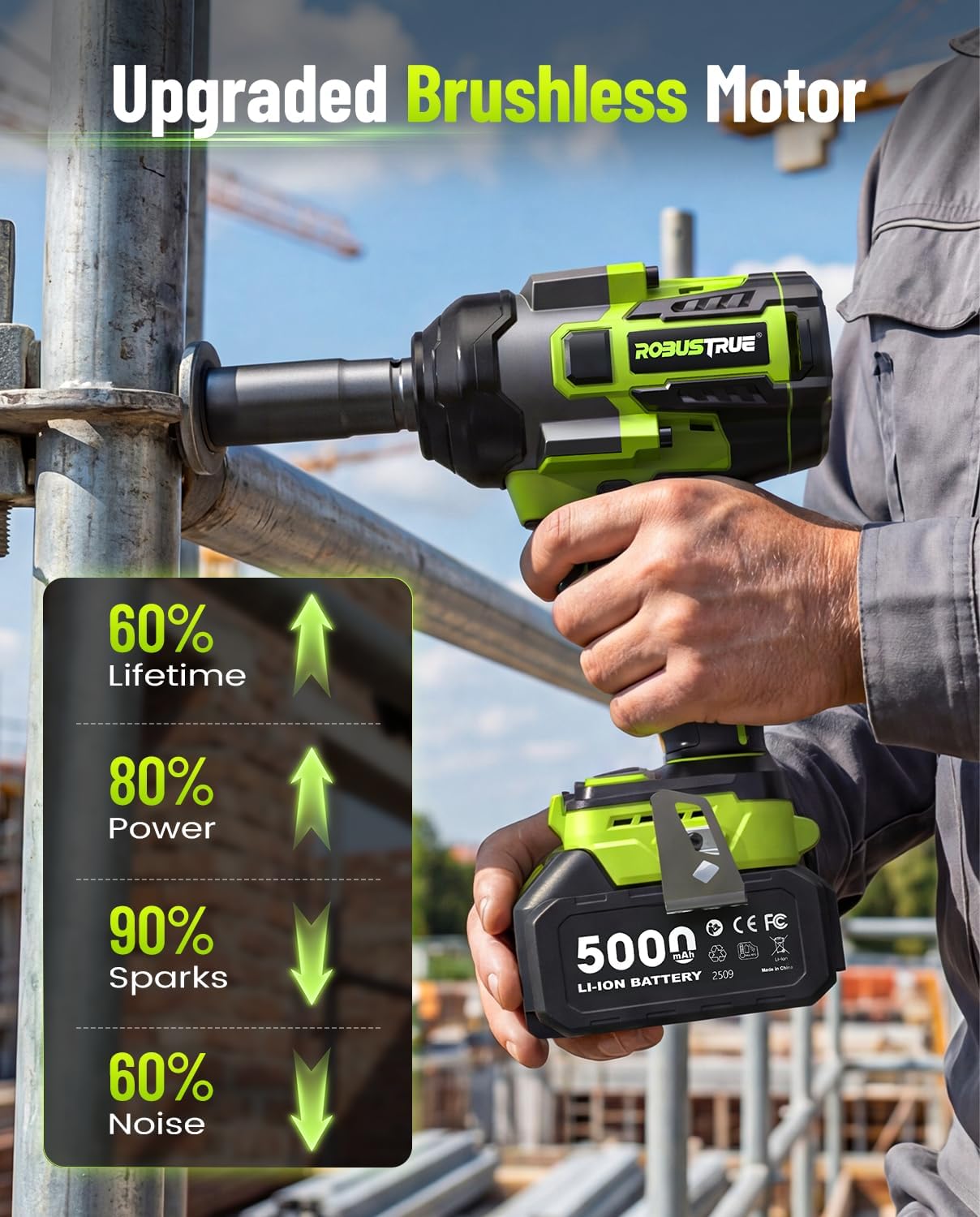 Robustrue 2000N.m Cordless Impact Wrench & 16.8V Max Brushless Impact Driver Kit