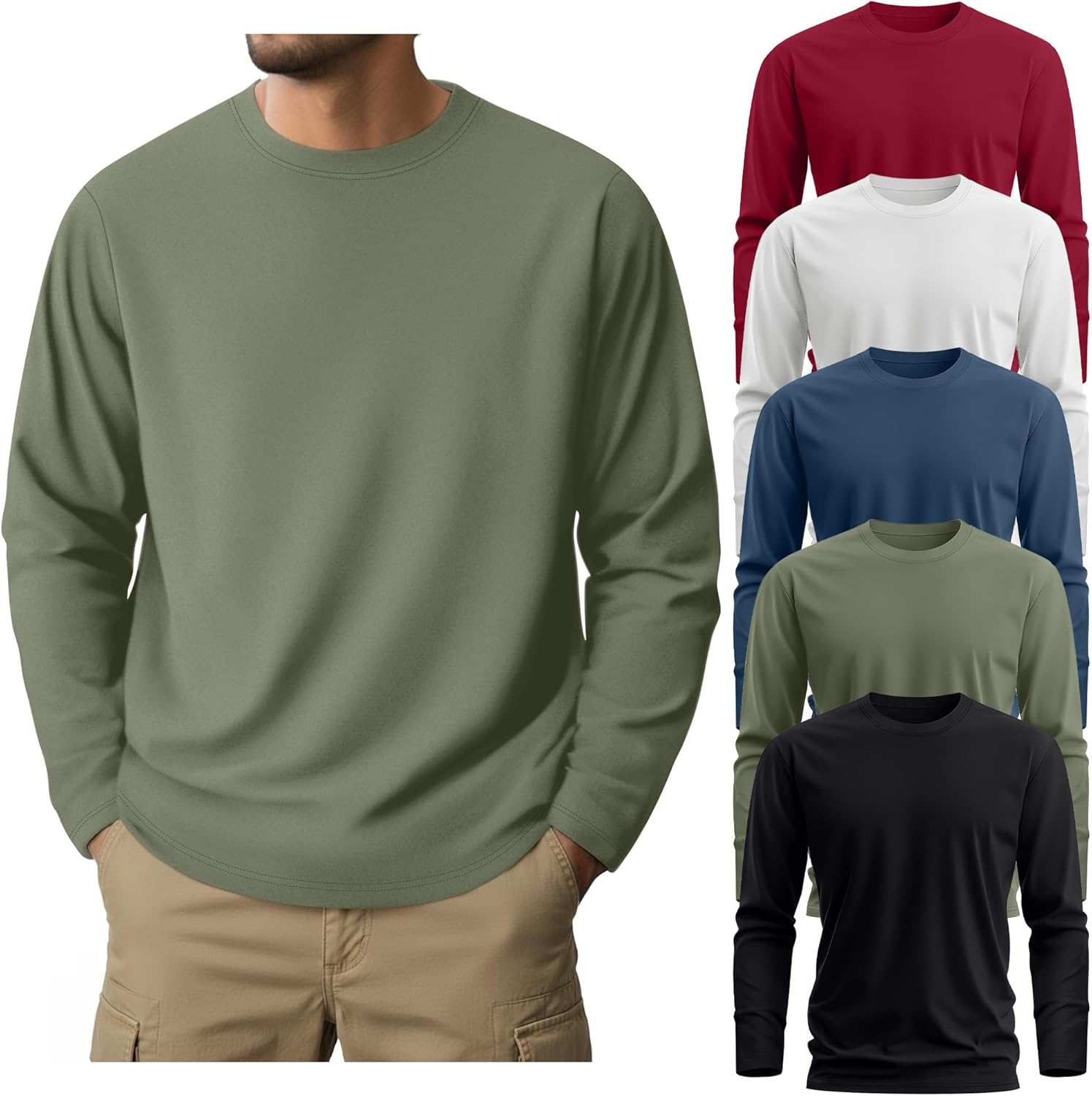 Features: These big and tall shirts for men are available in different sizes: L, XL, XXL, 3XL, 4XL, 5XL, 6XL, 7XL. Please refer to the size chart before purchasing and choose the size that suits you. Our classic long sleeve tees for men adapt to daily life: working from home, running errands, commuting, or park walks. Breathable cotton fabric is suitable for coffee, runs and weekends, while the loose fit maintains comfort whether driving, gardening, or relaxing. Designed for extended wear. Specifications: Material: 95% cotton, 5% spandex Package includes: 5 x Men's Big and Tall Shirts Notes: Manual measurement, please allow slight errors on size. The color may exist a slight difference due to different screen displays