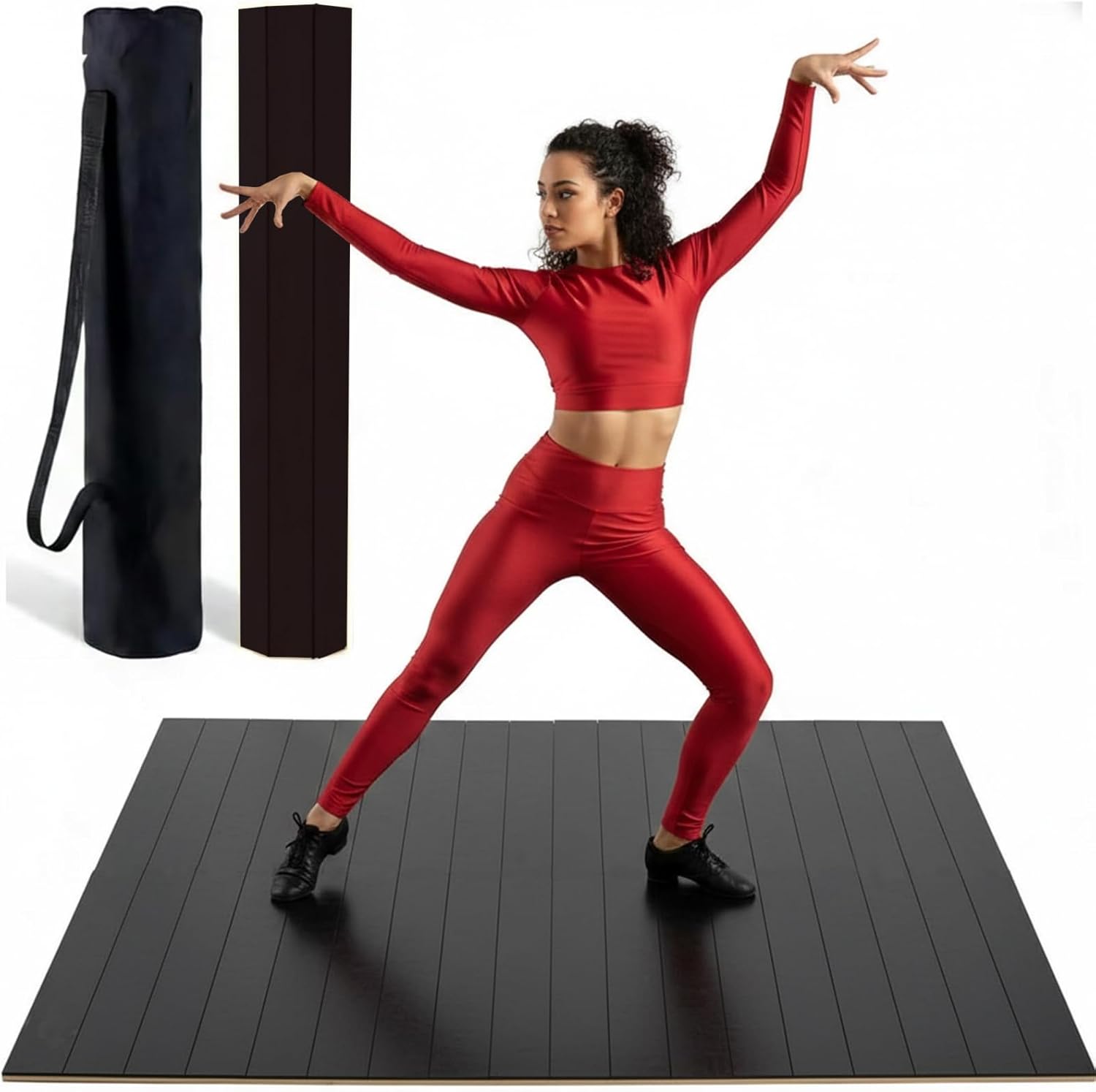 Upgrade Your Practice with the Professional 48" x 38.5" Bamboo Tap Floor Tired of tiny, cramped dance mats? Our oversized 48"L x 38.5"W bamboo tap board provides the expansive space you need for full-range movements, shuffles, and complex wing steps without ever stepping off the edge. At just 0.3" thick, it offers a low-profile, stable surface that integrates seamlessly into any home studio or outdoor setting. Rufus Optimized: Everything You Need to Know Is the practice area large enough for turns and wings? Yes! Unlike standard small mats, our 48-inch extra-wide surface (nearly 13 square feet) is designed for dancers who need room to move. It’s the perfect "sweet spot" for rhythmic tap, Irish step, and flamenco where lateral movement is key. How heavy is the board? Is it easy to carry alone? The board weighs 17 lbs, striking the perfect balance between sturdy stability (it won't slide or bounce while dancing) and portable convenience. Combined with the included heavy-duty carrying bag, it’s light enough for a teen or adult to carry to class or the park with ease. Does the 0.3" thickness provide enough sound resonance? Engineered with high-density solid bamboo, the 0.3" (8mm) thickness is optimized to produce a sharp, professional acoustic response. It mimics a permanent stage floor’s resonance while remaining thin enough to prevent tripping hazards during high-speed routines. Will it protect my joints and my home's hardwood floors? Absolutely. The integrated anti-skid foam backing provides essential shock absorption to reduce strain on your ankles and knees. It also acts as a protective buffer, ensuring your metal taps never scratch your expensive home flooring or tiles. How do I store it when not in use? The smart foldable design allows the 48" mat to collapse into a compact size in seconds. Slide it under a bed, behind a sofa, or in a closet—making it the ultimate space-saving solution for small apartments or busy studios.