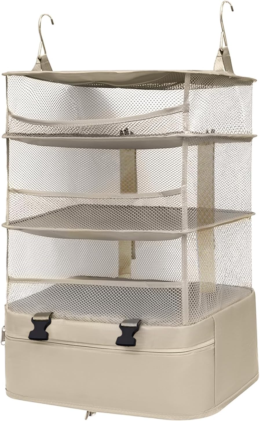 Upgrade Your Storage Game with Hanging Compression Packing Cubes! Tired of messy suitcases and cluttered spaces? Our 300D Oxford fabric hanging packing cube solves it all! This gray foldable organizer combines military-grade durability with smart space-saving – perfect for travelers and home organizers alike. 🌟 Why This Suitcase Organizer Hanging System Wins: Multi-Layer Mastery: Top inner pockets hold small items (socks/jewelry), dual shelves organize folded clothes, zippered base isolates shoes/dirty laundry, and the main cavity compresses blankets. Travel-Ready Engineering: At 1.57in thick when folded, it tucks into any luggage half. Unfold to 24.2in height for instant hanging compression packing cubes functionality in hotels/cabins. Water & Dust Protection: Encrypted Oxford fabric resists splashes, while full-wrap zipper blocks dust – ideal for toiletries, shoes, and sensitive items. 📐 Specifications & Notes: | Material | 300D Oxford Fabric | Packed Size | 14.56x9.44x1.57in | Unfolded Size | 14.56x9.44x24.2in | | Package | Hanging Closet Organizer ×1 | Note: Slight size/color variations may occur due to manual measurement or screen display differences. 🔍 Where to Use Your Hanging Packing Cube: Travel: Pack clothes/toiletries in suitcases Bathroom: Hang for cosmetics/towels Kitchen: Store spices/utensils Living Room: Organize remotes/snacks Bedroom: Bras/medicines/accessories 🎯 Click [Add to Cart] Now – Transform Chaos into Order!