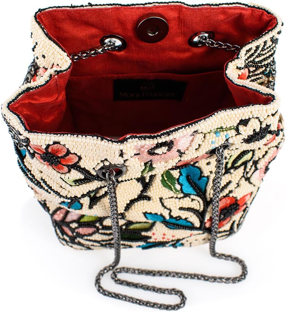 Carry the essence of a blooming garden with this floral-inspired handbag. It's a bold and beautiful way to keep nature close wherever you go. It's a bold and beautiful way to keep nature close wherever you go. The crossbody chain strap easily slides through grommets to keep all your belongings safe and secure and it can be doubled up to wear over the shoulder.