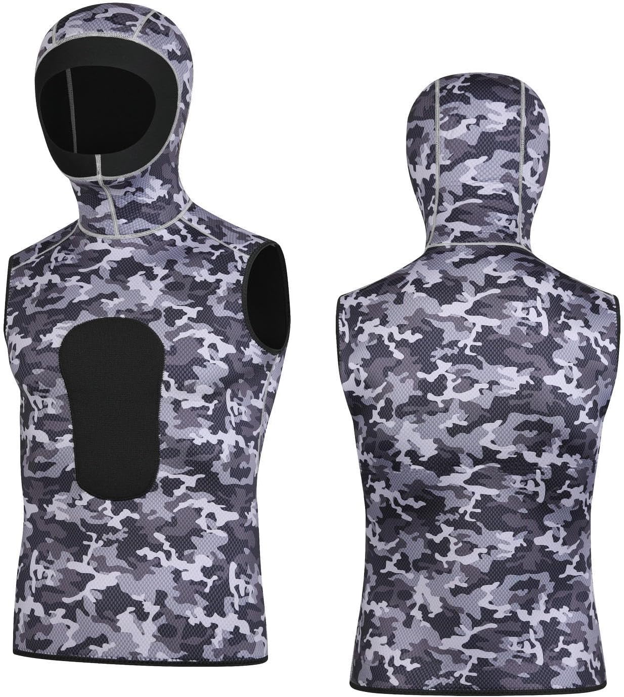 Men Women 3MM Sleevesless Diving Vest,Black/Camouflage Hooded Diving Suit Warm Surfing Swimming Snorkeling Suit Drifting Jacket