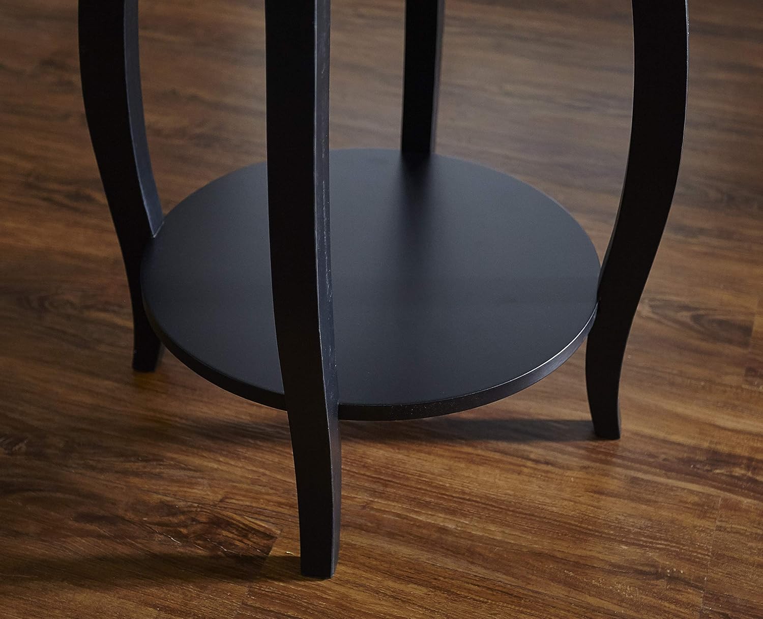 This contemporary round table is a convenient accent for any room of your home. Pair this piece with your favorite accent chair, on either side of your sofa or even as a nightstand beside of your bed. A round lower shelf offers a convenient option for storing magazines, coasters or your favorite books. The cabriole tapered legs can match almost any style or design. Some assembly required.