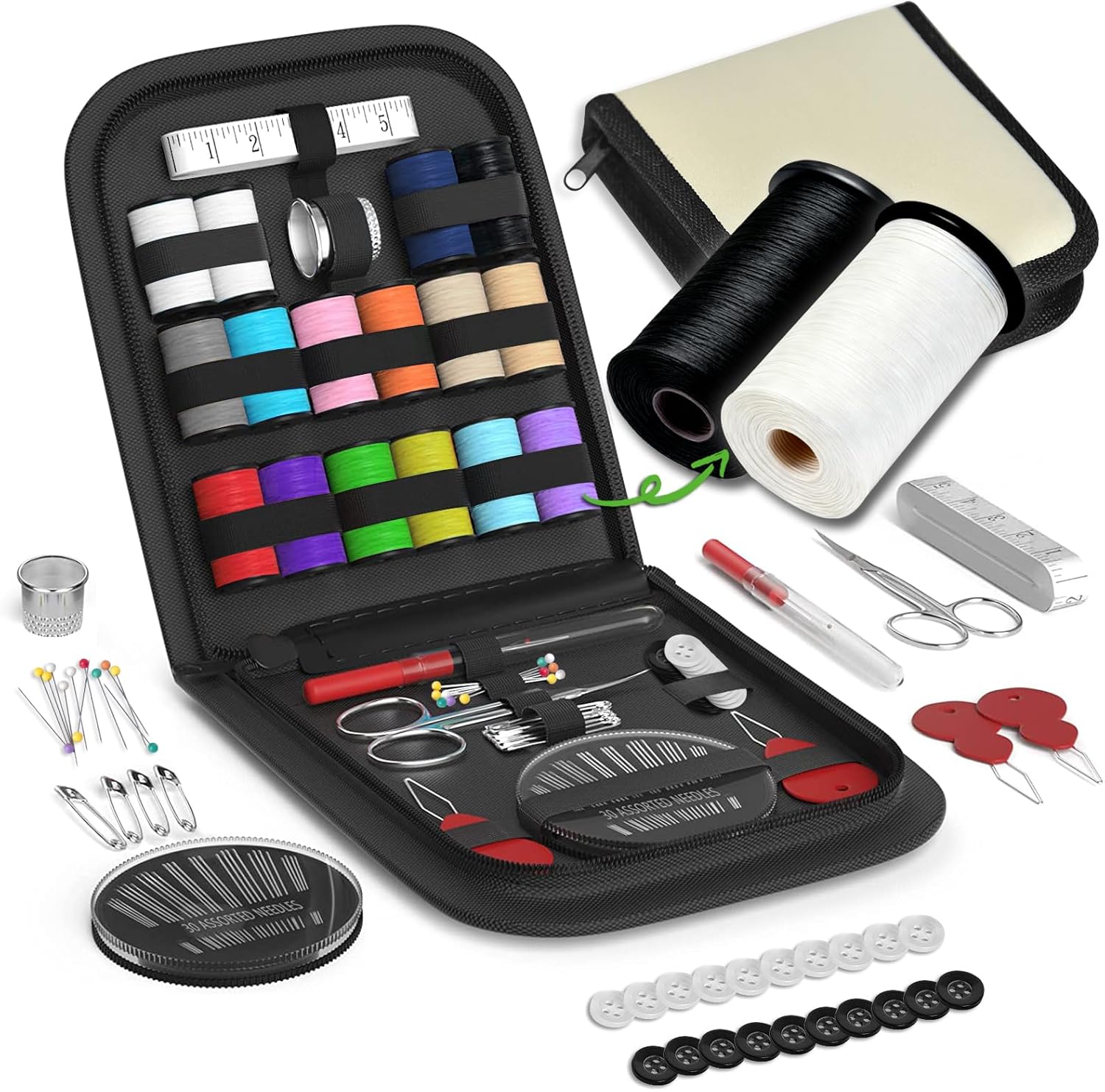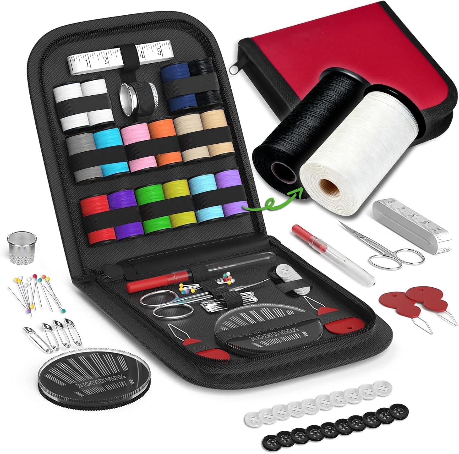 Sewing Kit Gifts for Grandma, Mom, Friend, Traveler, Adults, Beginner, Emergency,Sewing Supplies Accessories with Scissors,Sewing Needles Thimble, Thread,Tape Measure etc (Black, S)