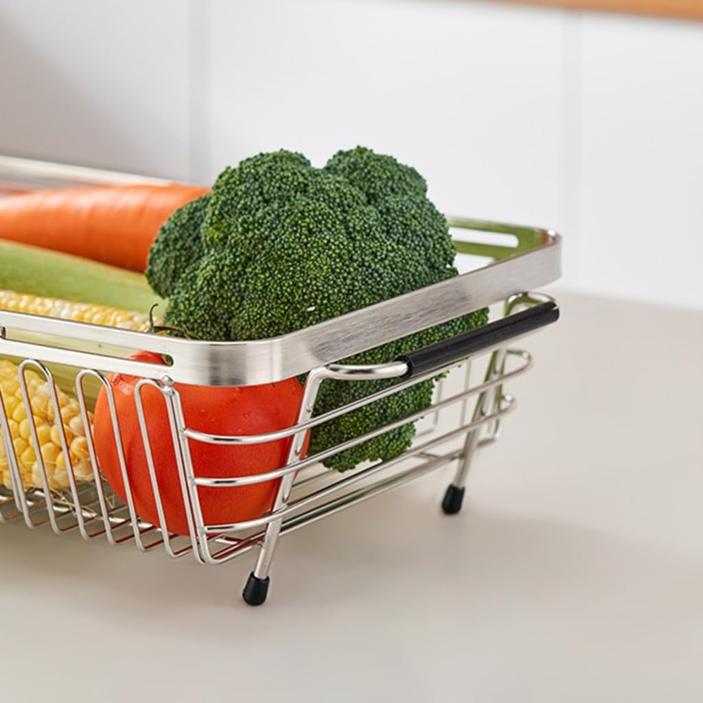 Features: Expandable stainless steel colander adjusts effortlessly to fit various sink sizes, offering kitchen use with its easy length adjustment for efficient draining and storage. Meshes designs ensures rapid water drainage while rustproof stainless steel maintains structural integrity in humid environment, combining durability with functional elegant. Ideal for apartment residents, cooking enthusiasts, and multitasking families seeking space saving solution to organize washed produce or dishware in portable kitchens. Effortlessly between washing vegetables in farmhouses sinks, drying delicate tableware after parties, or serving as a temporary fruit basket on crowded countertops. Smooth surfaces repels food residues and easy cleaning, while its foldable frame nestles neatly beside sinks vertical storage without sacrificing counter space. Specifications: Materials: Stainless Steel Type: As Picture Show, Two Type to Choose Size: 30x15.8x24.5cm/11.81x6.22x9.65inch, 30x21.5x24.5cm/11.81x8.46x9.65inch Note: 1.Please allow 1-2cm errors due to manual measurement, making sure that you will not mind before order. 2.Due to the differences between different monitors, the picture may not reflect the actual color. Package includes: 1pc Dish Drying Rack