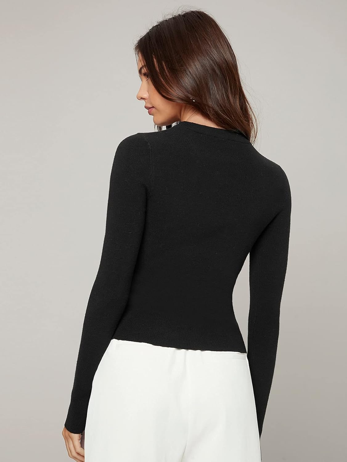 SBust : 24.4 inchCuff : 2.8 inchLength : 20.1 inchShoulder : 11.8 inchSleeve Length : 26 inchMBust : 26 inchCuff : 3 inchLength : 20.9 inchShoulder : 12.2 inchSleeve Length : 26.4 inchLBust : 27.6 inchCuff : 3.1 inchLength : 21.7 inchShoulder : 12.6 inchSleeve Length : 26.8 inchColor: Khaki,Light Grey,Black,White,Dusty BlueStyle: BasicsPattern Type: PlainType: Basic TopsNeckline: Round NeckSleeve Length: Long SleeveSleeve Type: Regular SleeveLength: RegularFit Type: Regular Fit,Slim FitFabric: High StretchMaterial: ViscoseComposition: 42% Viscose,30% Nylon,28% PolyesterCare Instructions: Machine wash or professional dry cleanSheer: NoDetails: Rib-Knit