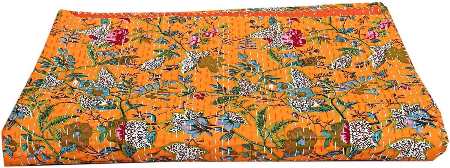 This Indian vintage kantha cotton quilt is completely hand stitched by Women artisan in Rajasthan, India. Kantha is a uniquely quilted texture made from layering colorful vintage. These quilts are famed and admired due to their Kantha work. Add classic style and elegance to your bedroom with a solid quilt set that comes in two patterns and an array of colors. They have different beautiful warm and charming colors, designs and patterns on either side which gives a distinct look. A beautiful creation to give your home a traditional yet authentic colorful. This kantha coverlet is reversible with contrasting vibrant patterns and colors. This kantha quilts can be used for bed covering to bedspread, blanket, bed-cover, quilt, throw. Quilts are made with quality fabric and are reversible which can be used from both sides.