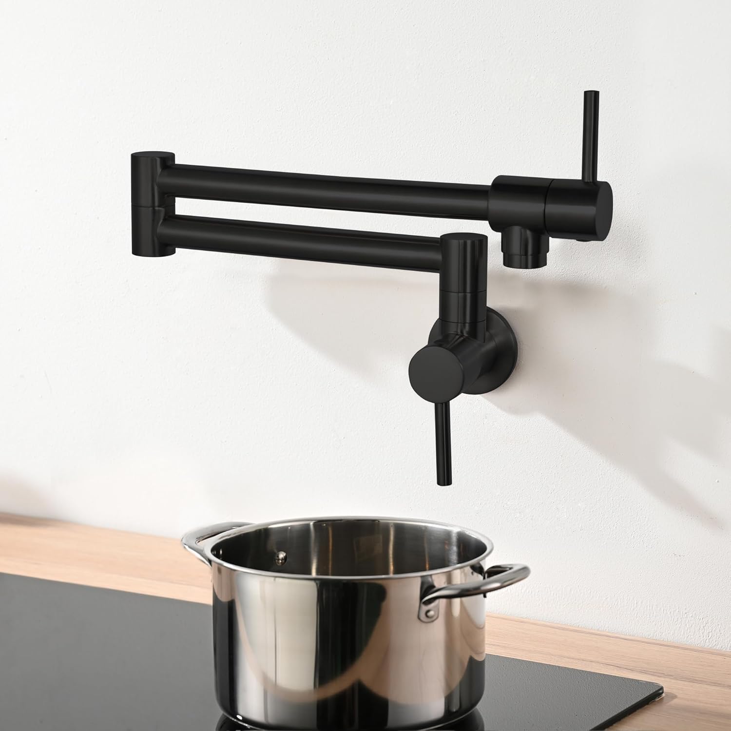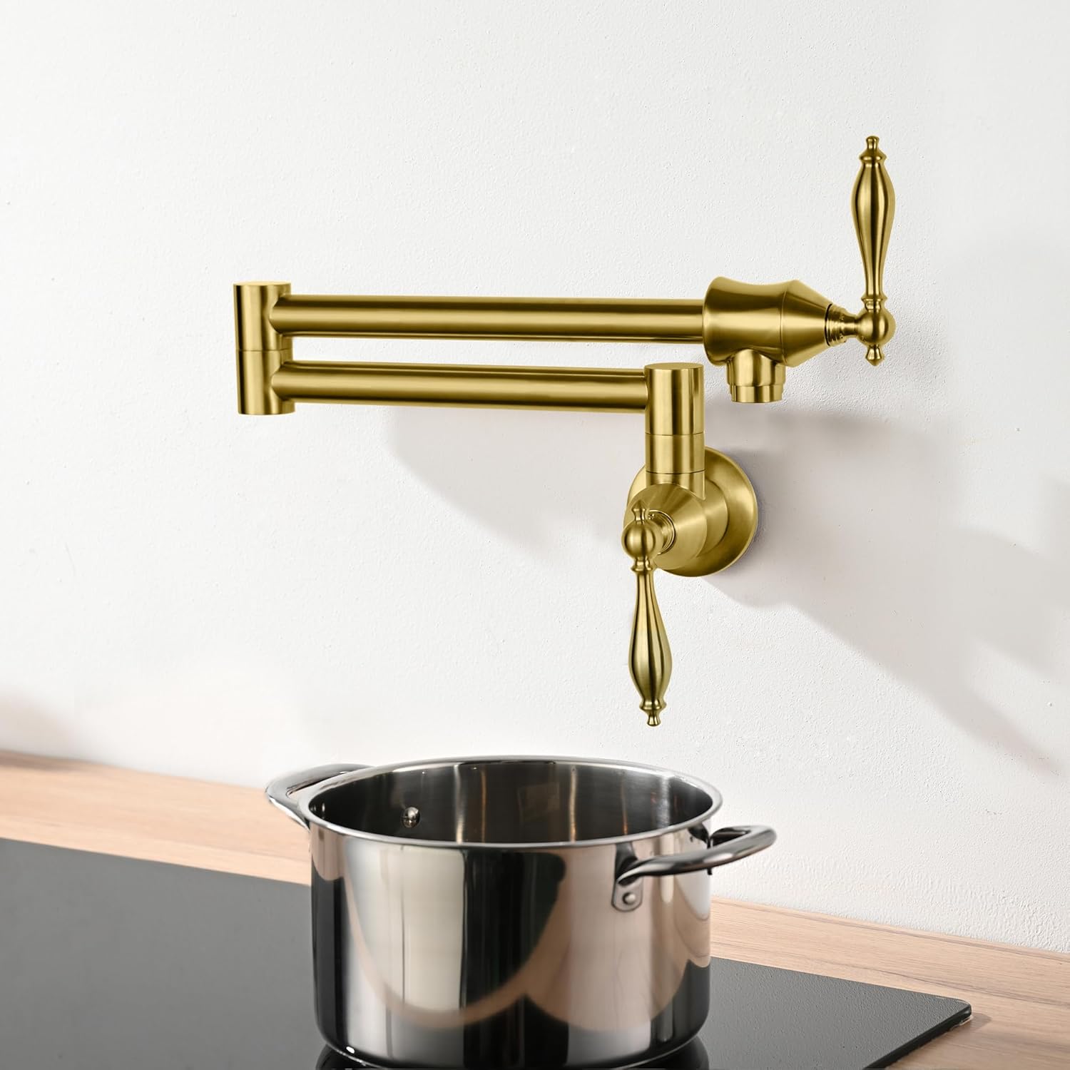 DIAMONDFORGE Pot Filler Faucet, Brushed Gold Commercial Wall Mount Sink Faucet, Brass Folding Faucet Over Stove, Double Joint Swing Arms Kitchen Pot Faucet